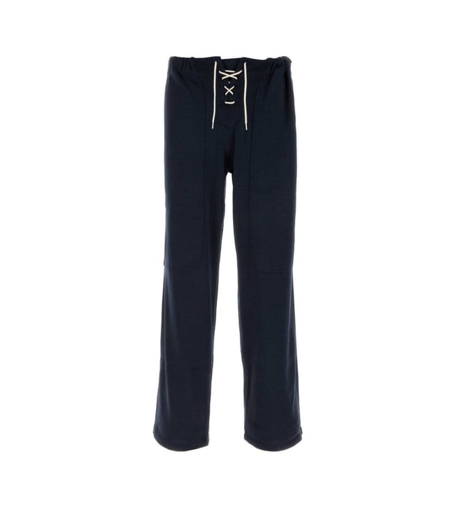 Elevate your style with the Bode Navy Blue Regular Fit trackpants. Lacefront sweatpants Crafted for durability and comfort. Products purchased from Darveys are supported exclusively by the warranty/exchange policies of Darveys and its partner boutiques. Brand owners and their channel partners are not responsible for exchange/warranty services for items purchased through Darveys.