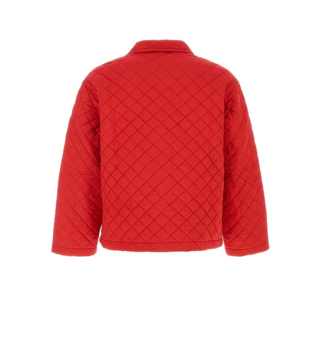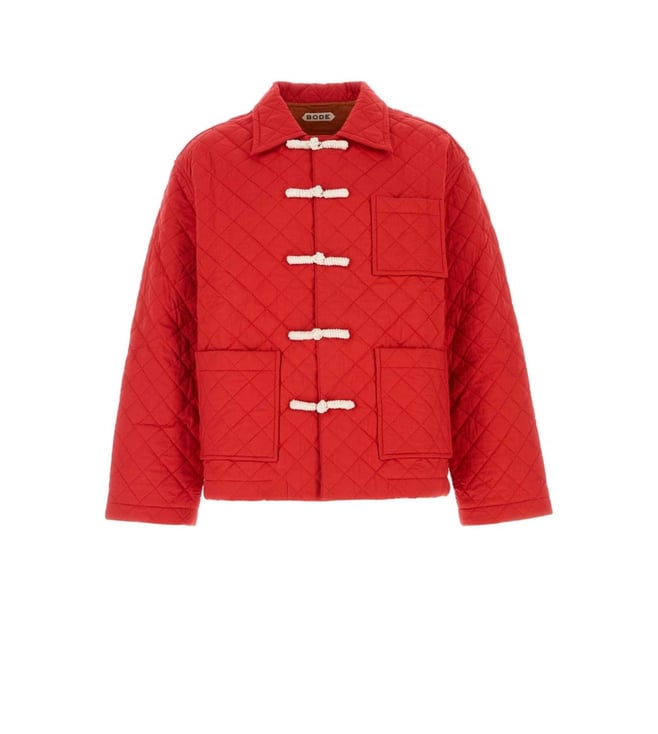 Elevate your style with the Bode Red Quilted Jacket. Jacket realized in quilted pure cotton characterized by tonal embroidered logo at the back. Collar peculiar buttons closur a chest pocket and two patch pockets at the front lined. Products purchased from Darveys are supported exclusively by the warranty/exchange policies of Darveys and its partner boutiques. Brand owners and their channel partners are not responsible for exchange/warranty services for items purchased through Darveys.