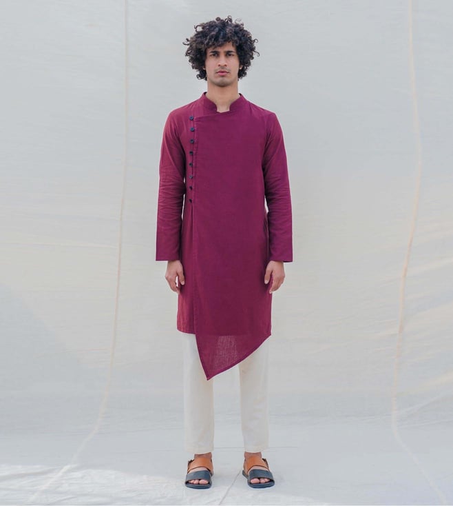 Off White Satori Nirvana Chikankari Open Achkan Jacket with Short Kurta and Pant