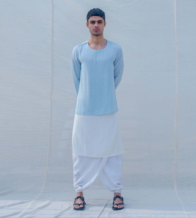 Light Blue Short Kurta and Blue Drop Crotch Pants Set
