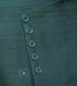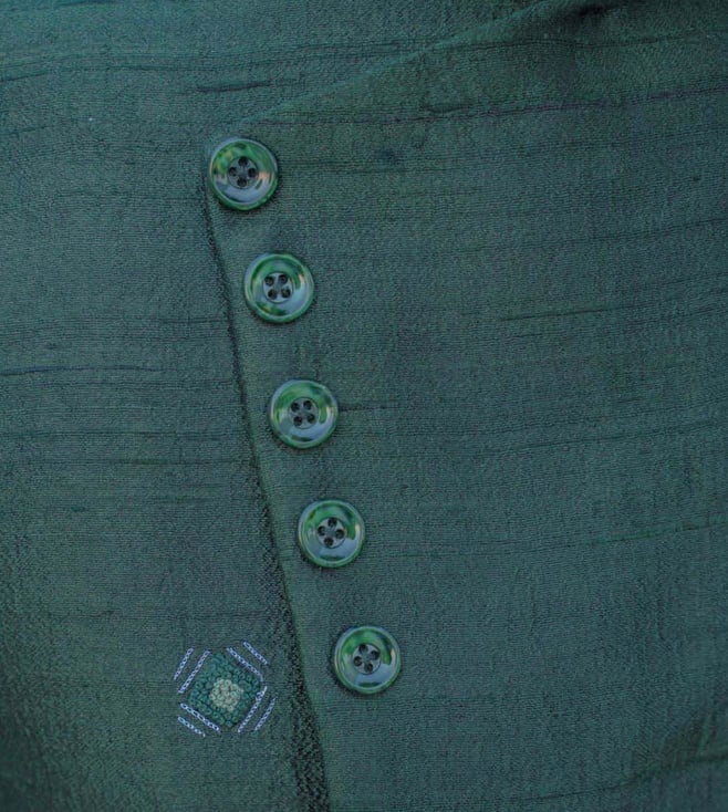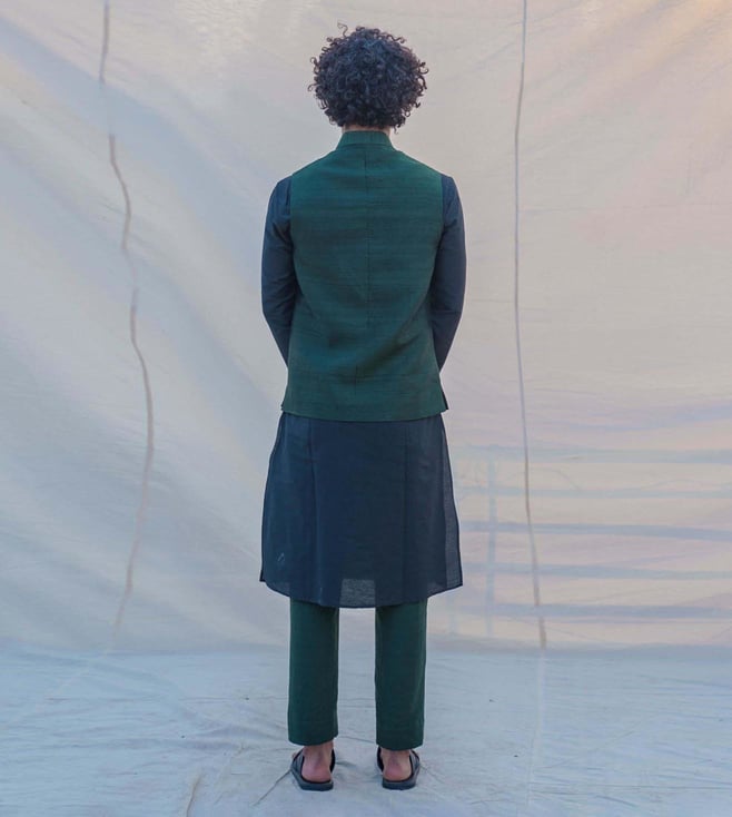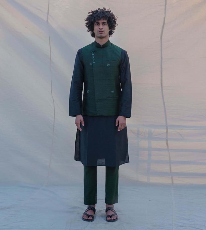Bohame Raw Silk Green Waist Coat, Kurta and Pant Set