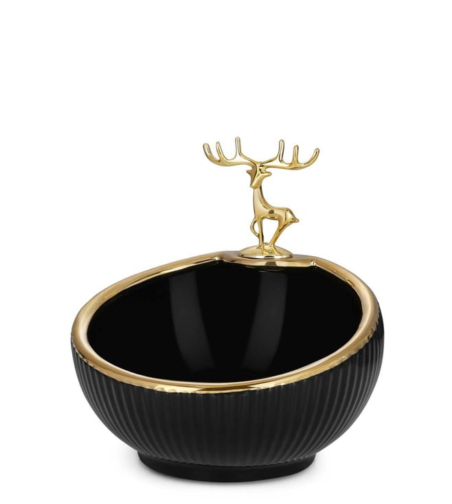 Black & Gold Glass Embellished Serving Bowls - Set of 2