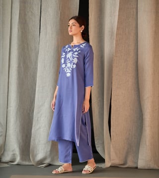 Bombay Bloom Dusk Blue Tencel Linen Regular Fit Kurta Set