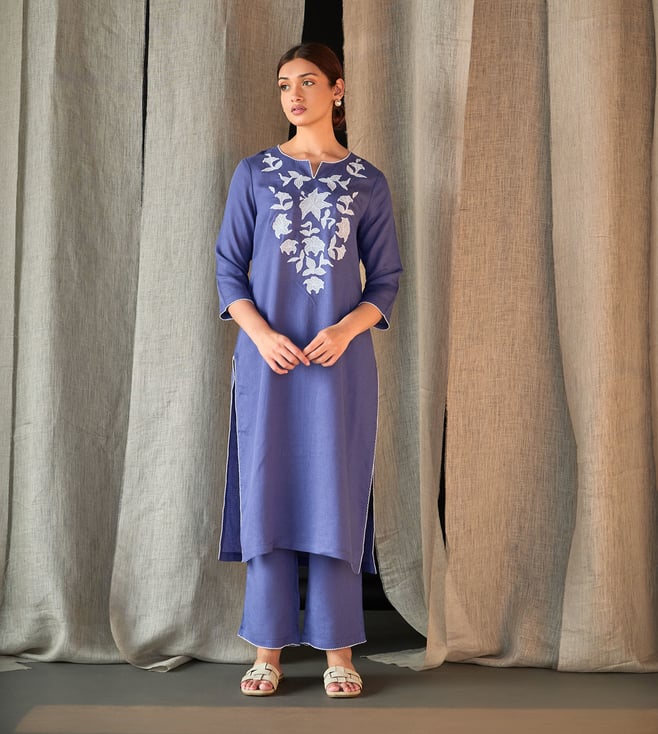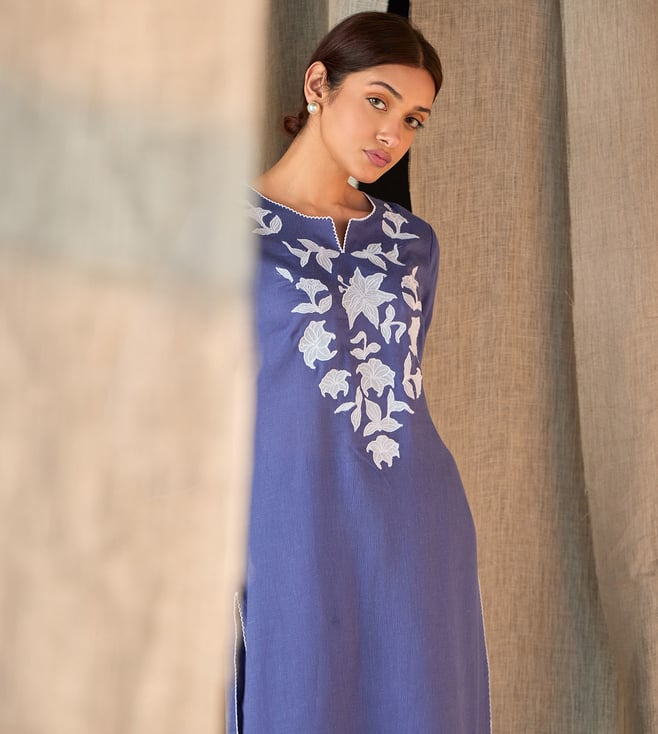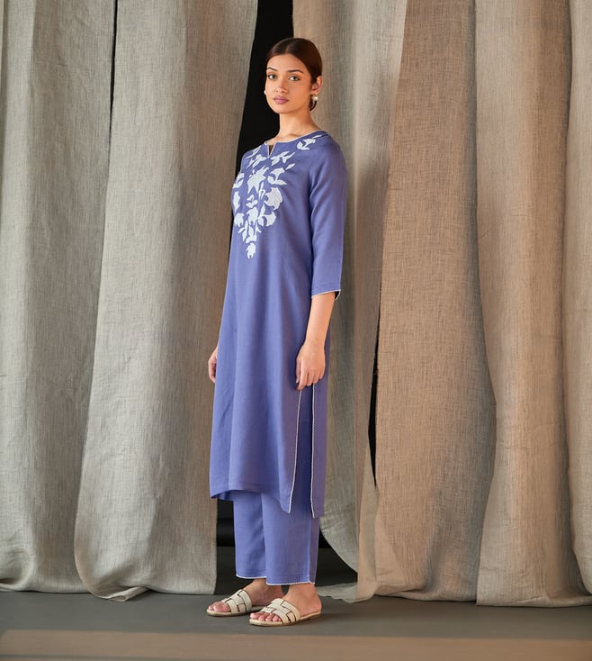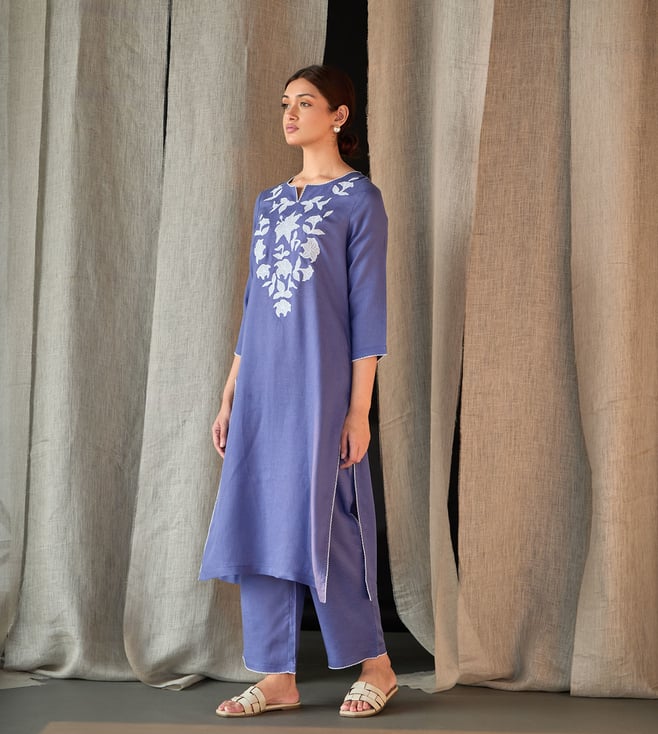 Elevate Your Style With The Designed For Women, Bombay Bloom Dusk Blue Tencel Linen Regular Fit Kurta Set This Vibrant Piece Combines Comfort And Elegance. Disclaimer: All Other Items In The Image Are Only For Display Purposes And Will Not Be A Part Of The Delivery Content. Product Colour May Slightly Vary Due To Photographic Lighting Sources. Country Of Origin - India.