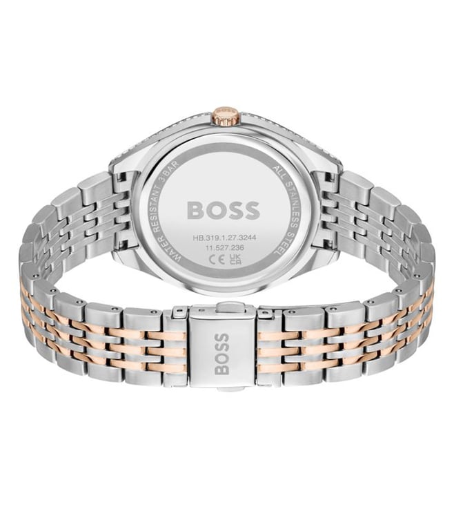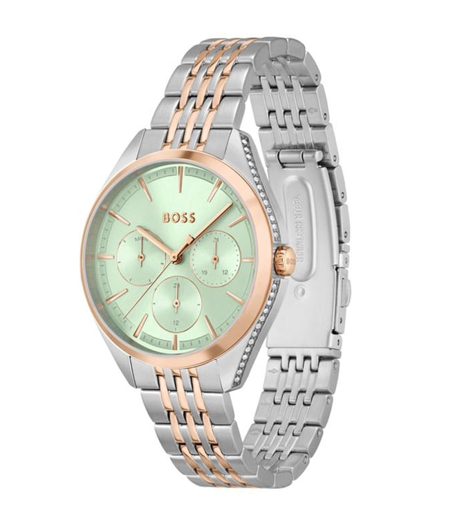 Hugo Boss Saya is an incredible and eye-catching watch from the Saya collection. The material of the case is stainless steel and the dial gives the watch that unique look. 30 m water resistance protects the watch and allows it to be worn in scenarios where it is likely to be splashed but not immersed in water. It can be worn while washing your hands and will be fine in rain.