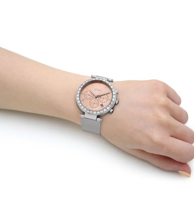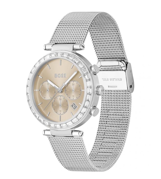 Treat yourself to a slice of luxury with this Boss watch from the Andra family. Showcasing a 39 mm stainless steel case, this posh timepiece commands attention. The subtle elegance of its dial makes it easy to pair with your ensemble, day or night. The element that truly sets this Boss watch apart, is its stylish bracelet. Go ahead and indulge in water activities, as this timepiece is water resistant up to 30 m.