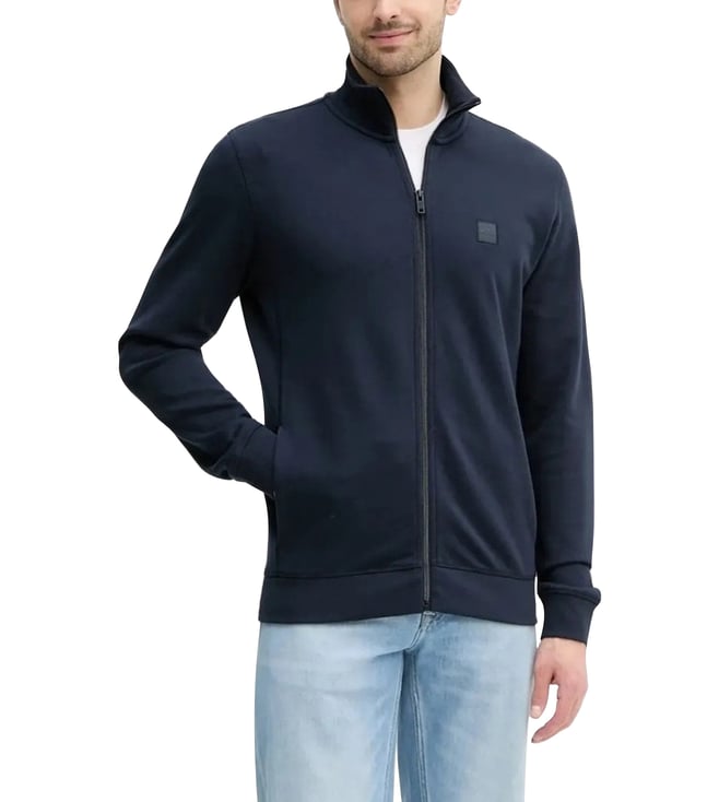 Dark Blue High-Neck Zip-Up Sweatshirt