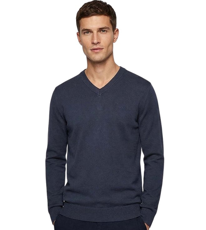 Navy Blue V-Neck Regular Fit Sweatshirt