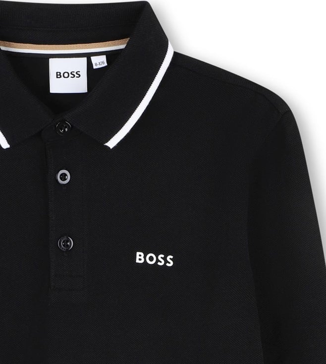 Elevate your child's wardrobe with the BOSS Kids Black Polo T-Shirt. Made from high-quality materials, this stylish polo offers a sleek and versatile option for any occasion. The classic black color adds a touch of sophistication, while the comfortable fit ensures all-day wear. Perfect for school, playdates, or family outings, this polo is a must-have staple for every young trendsetter. Upgrade your child's look with the BOSS Kids Black Polo T-Shirt today!