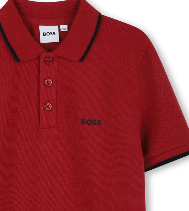 Elevate your child's style with the BOSS Kids Dark Red Polo T-Shirt. Crafted from high-quality materials, this polo shirt offers a perfect blend of comfort and sophistication. The classic dark red color adds a touch of elegance to any outfit, while the iconic BOSS logo on the chest showcases premium quality. Whether for a casual day out or a special occasion, this polo shirt is versatile and timeless. Give your little one the gift of style and luxury with the BOSS Kids Dark Red Polo T-Shirt.