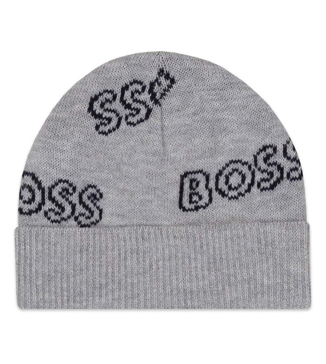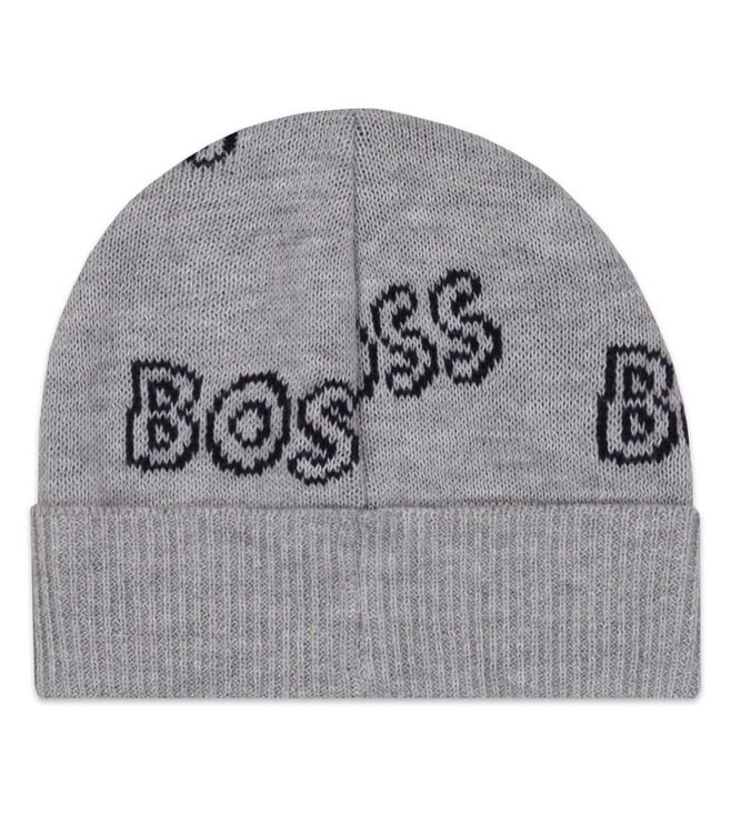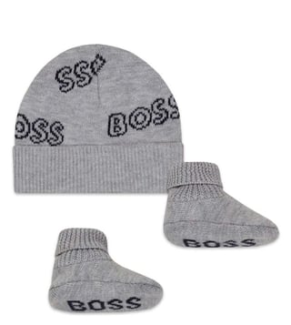 Boss Kids Grey Logo Beanie Cap & Slippers (12M)