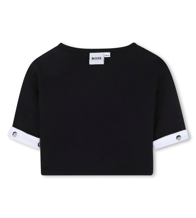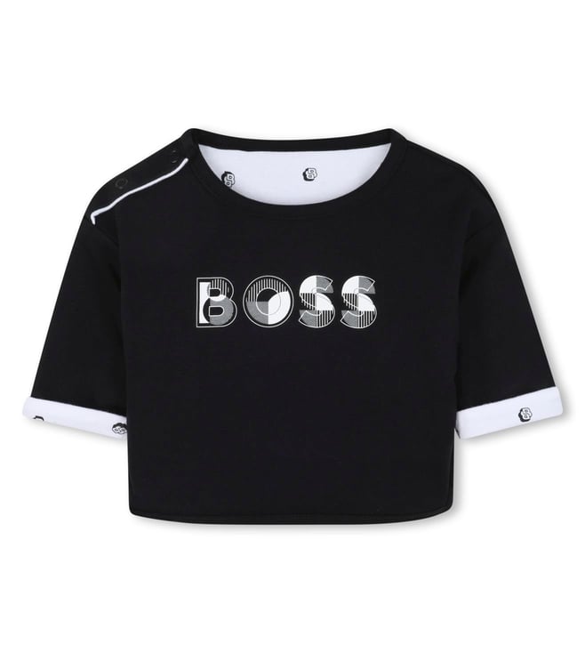 Introducing the BOSS Kids Multicolour Reversible Printed Clothing Set, a versatile and stylish addition to your child's wardrobe. This set offers the convenience of two looks in one with its reversible design, allowing for endless outfit possibilities. The vibrant multicolour prints add a playful touch to any ensemble, while the high-quality materials ensure comfort and durability. Perfect for fashion-forward kids who love to mix and match, this clothing set is a must-have for every young trendsetter.