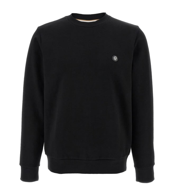 Black Crewneck Logo Patch Regular Fit Sweatshirt