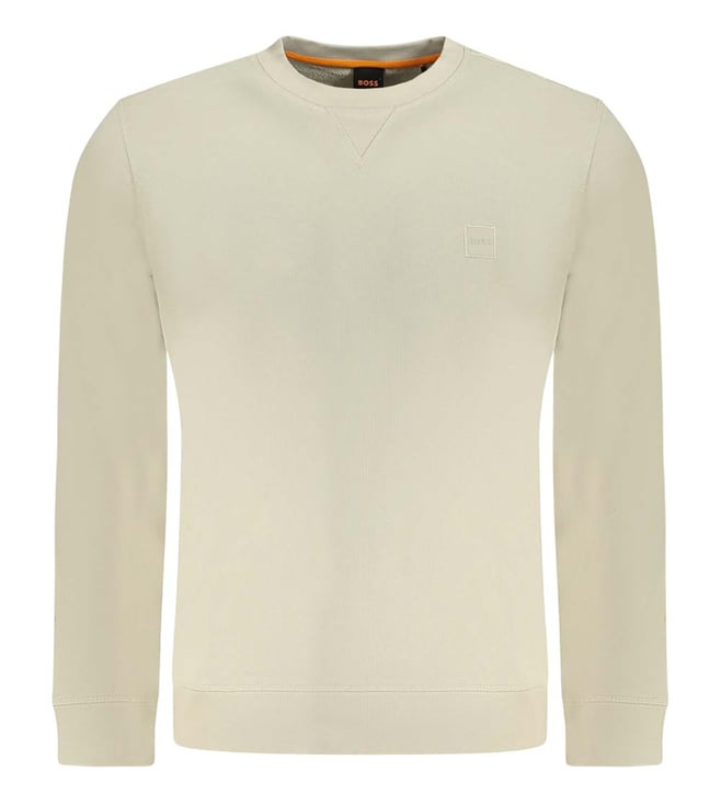 Beige Crewneck Logo Patch Regular Fit Sweatshirt