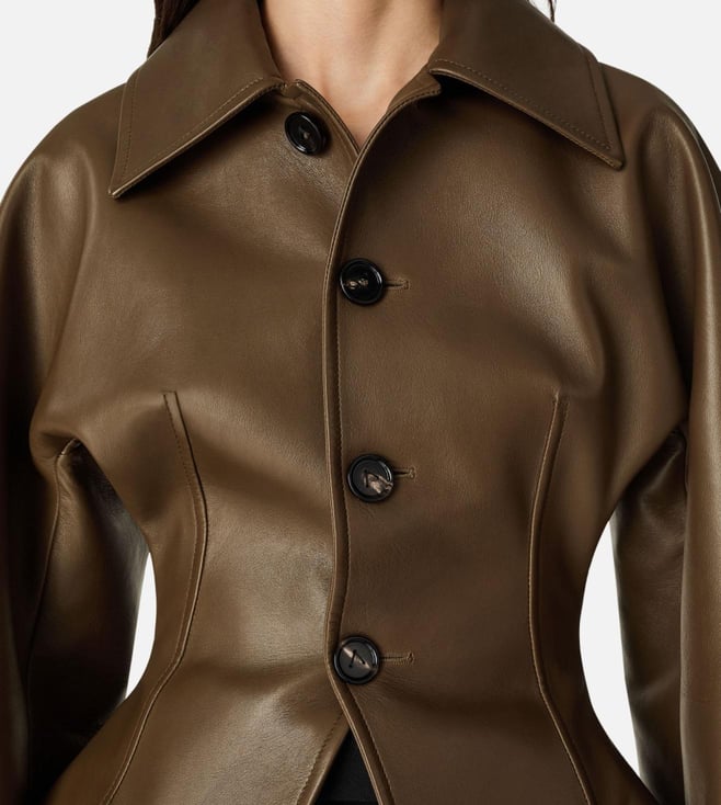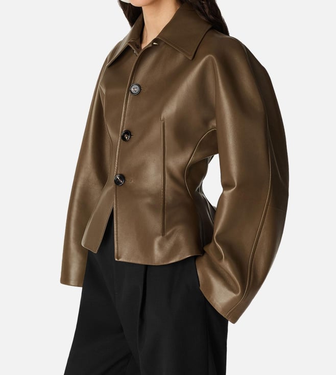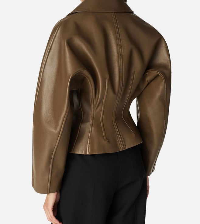 The Bottega Veneta Brown Jacket is a masterpiece of understated elegance, crafted from the finest Italian leather. Its rich, earthy hue exudes warmth and sophistication, while the supple texture promises unparalleled comfort. The jacket features a sleek, minimalist design with subtle stitching that highlights its impeccable tailoring. A hidden zipper and discreet pockets add functionality without compromising style. This jacket is a timeless piece, perfect for those who appreciate luxury and refined simplicity.