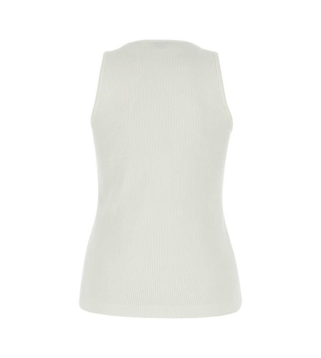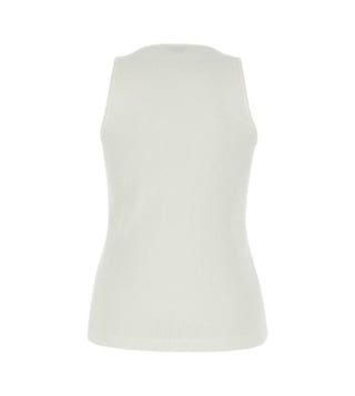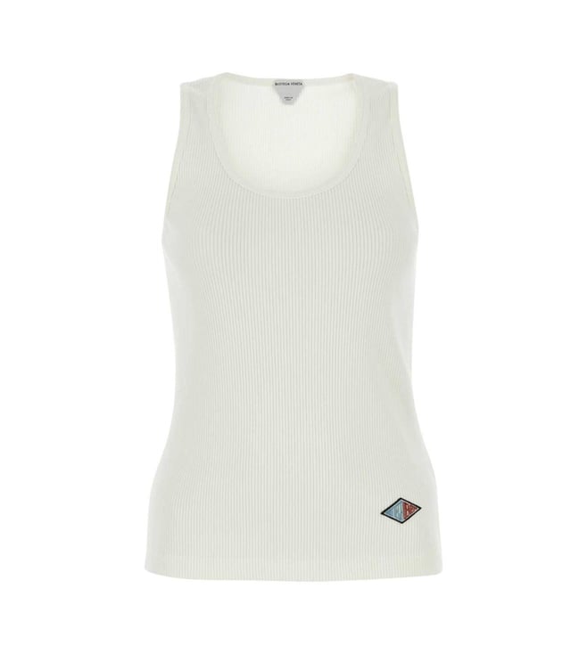 The Bottega Veneta White Embroidered Logo Tank Top is a seamless blend of elegance and modernity, crafted for the discerning woman. Its pristine white hue serves as a canvas for the subtle yet striking embroidered logo, exuding understated luxury. The regular fit ensures comfort and style, while the 93% cotton and 7% elastane fabric offers a soft, flexible feel. Designed with a minimalist aesthetic, this tank top is a versatile staple, perfect for layering or wearing solo, embodying effortless sophistication.