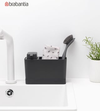 Keep your countertop clean and neat with this 2-piece Brabantia sink organizer set, consisting of a sink organizer and a soap dispenser. The soap dispenser holds your favorite hand soap or dishwashing liquid, while the sink organizer fits perfectly in this sink, leaving enough space for your sponges, clothes or dish brush. A super set for optimal organizing.