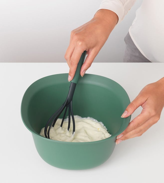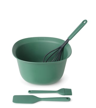 All sticky situations and mix-ups are whisked away by this hands-on quart for baking and mixing. A complete and clever set of a whisk, bowl, pastry brush, and spatula. The rim of the mixing bowl makes pouring easy, whilst the silicone base prevents slipping. Whisk has an open shape for easy mixing and cleaning. Baking spatula for mixing scraping - soft and flexible silicone. Pastry brush for buttering baking tins, glazing cakes, and spreading oil -soft and flexible silicone. Easy to clean - dishwasher safe. Part of the Brabantia TASTY+ collection - a colourful tool for every kitchen job!