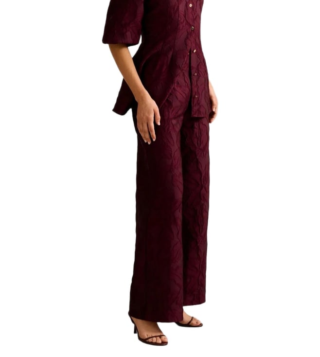 Elevate your style with the Brady Wide Leg Pants, a chic and sophisticated addition to your wardrobe. With a high-rise waist and relaxed fit, these pants offer both comfort and style. The floral texture adds a touch of modern artistry, while the functional front pockets and back welts provide practicality. Pair with the matching Brady Darted Shirt for a complete look. Made from a comfortable textured fabrication, these pants are perfect for any occasion. Update your wardrobe with these uniquely Melbourne designs that you'll love season after season.