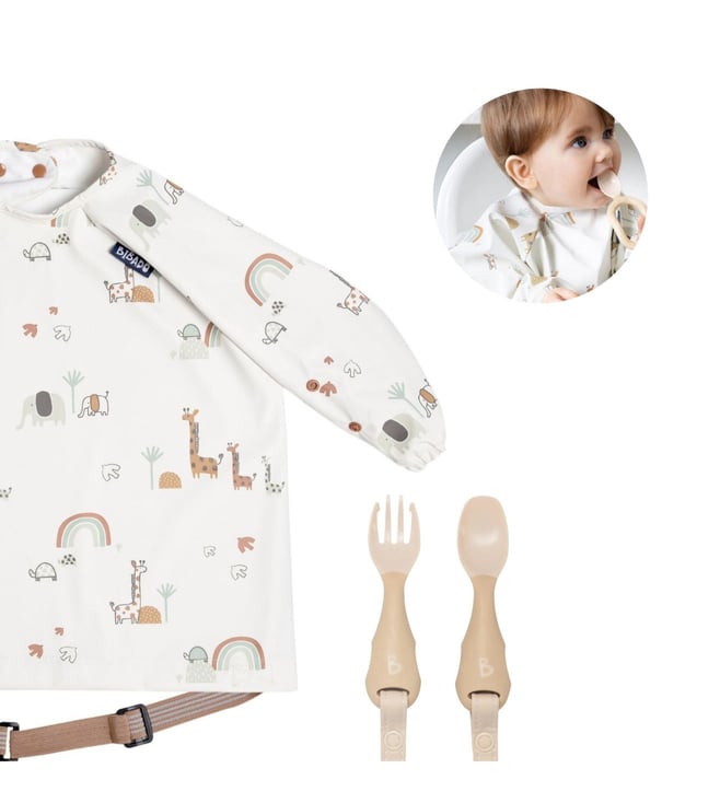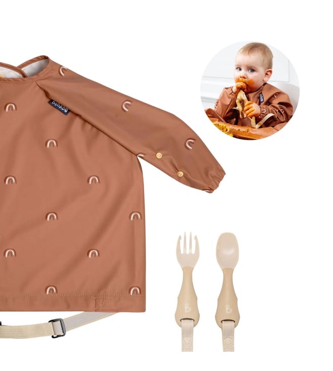Fawn Brown Chasing Rainbows Coverall Bib with Handi Cutlery Set 6 - 36M