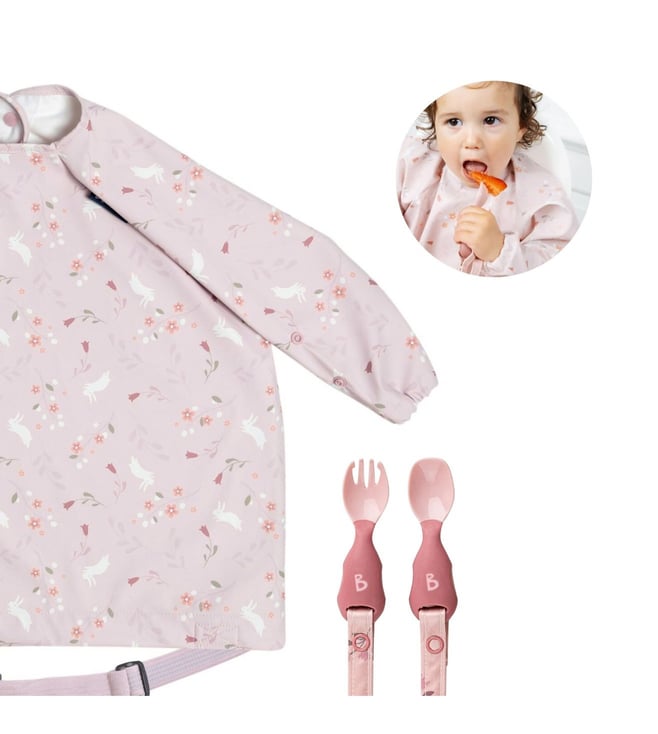 Blush Pink Botanical Bunnies Coverall Bib with Handi Cutlery Set 6 - 36M