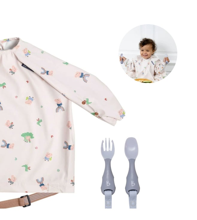 Beige Stain & Water Proof Long Sleeve Coverall Shirt Weaning Bib George Pig Print