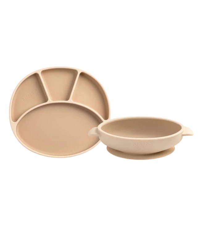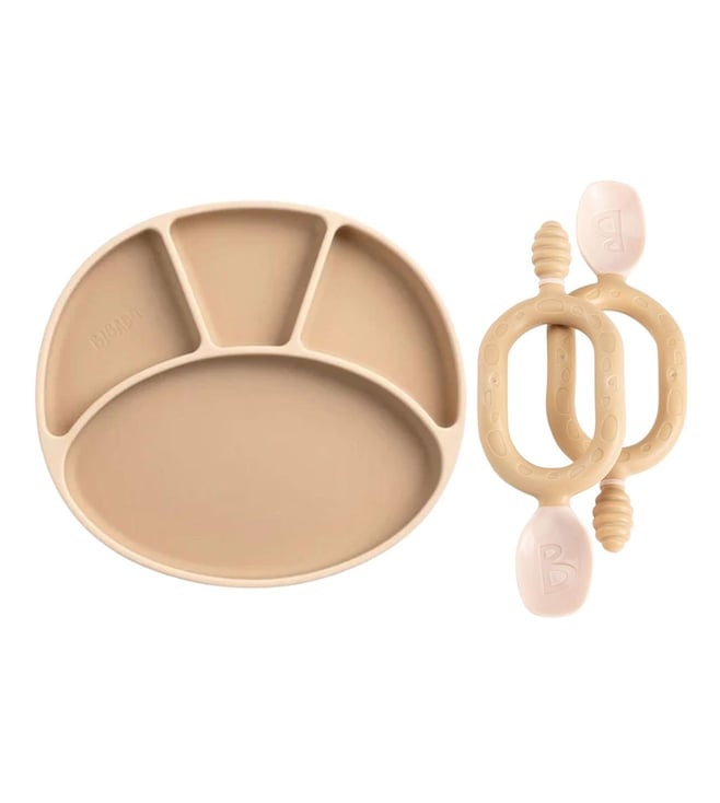 Fawn Brown Serengeti Spaghetti Coverall Bib with Handi Cutlery Set 6 - 36M