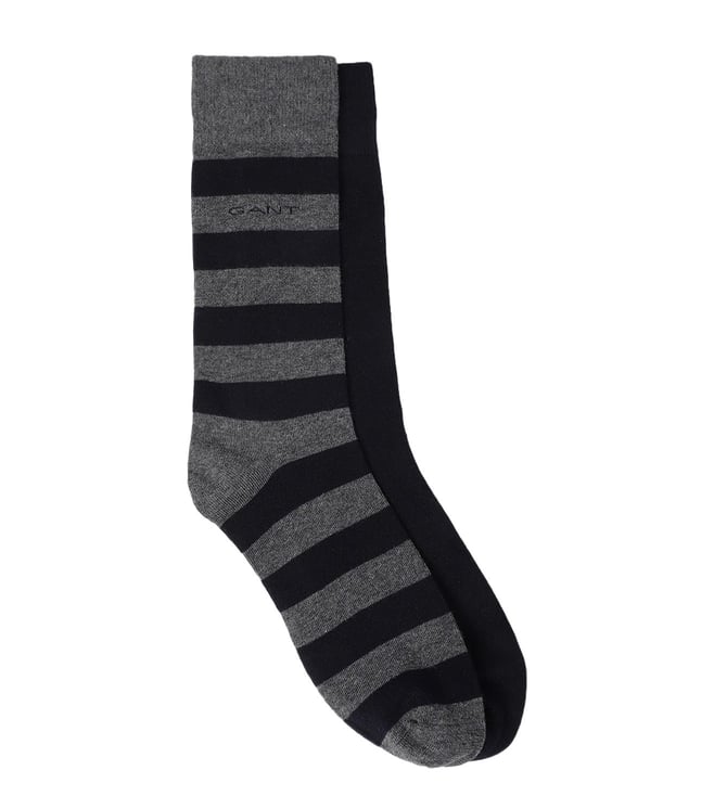 Charcoal Striped Calf Length Socks (One Size) - Pack of 2