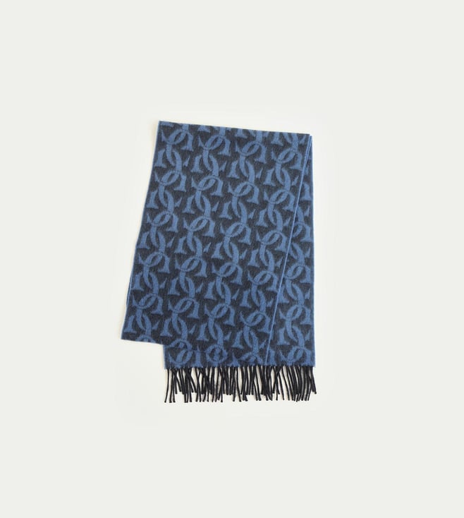 Blue Printed Fringed Scarf (One Size)