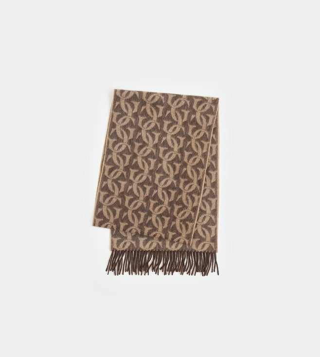 Brown Wool Knitted Printed Muffler