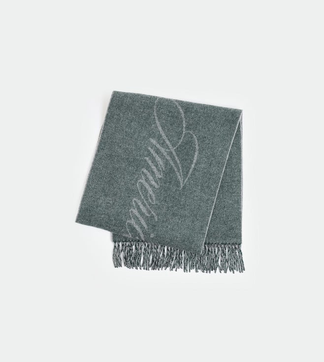 Green Wool Knitted Printed Muffler