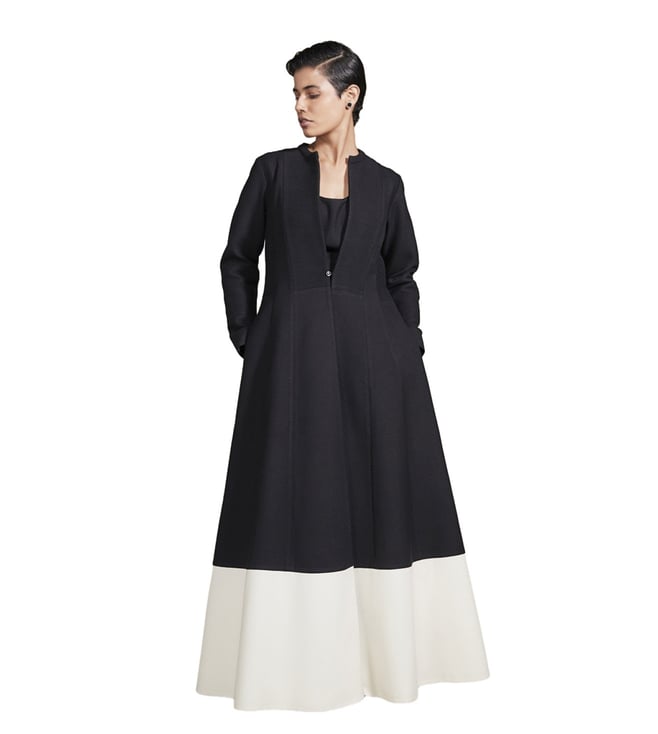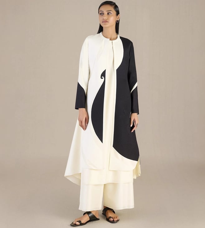 Black & Ivory Ikai Attara Jacket with Long Inner and Palazzo