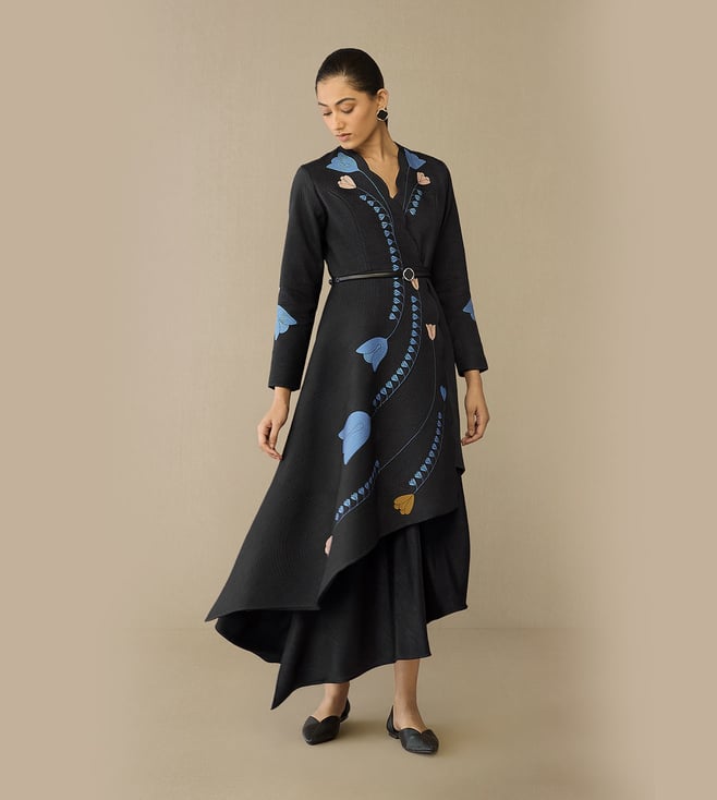 Smokey Black Raw Silk Eraya Jacket Set