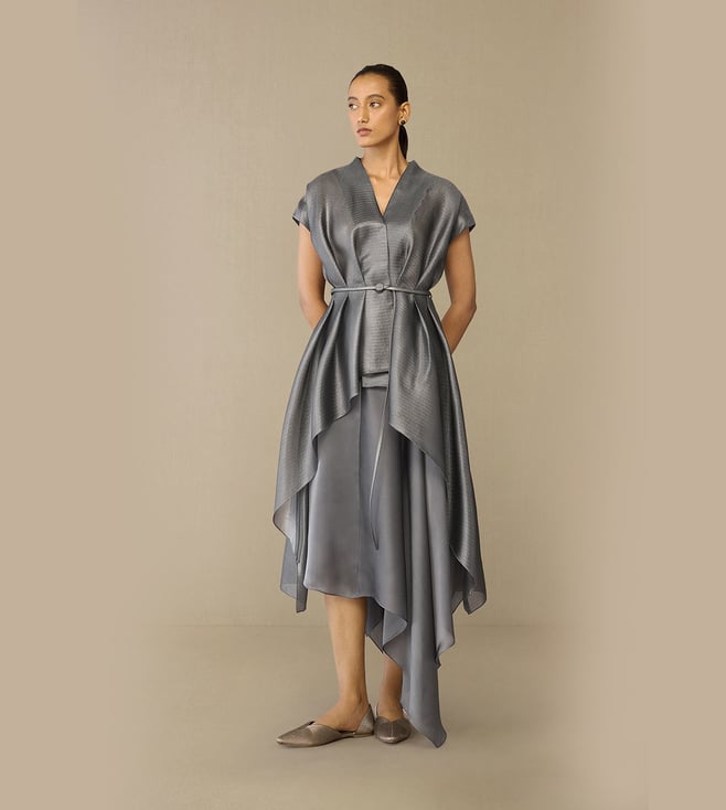 Ramadan Taupe Rubab Jacket with Inner Dress and Belt