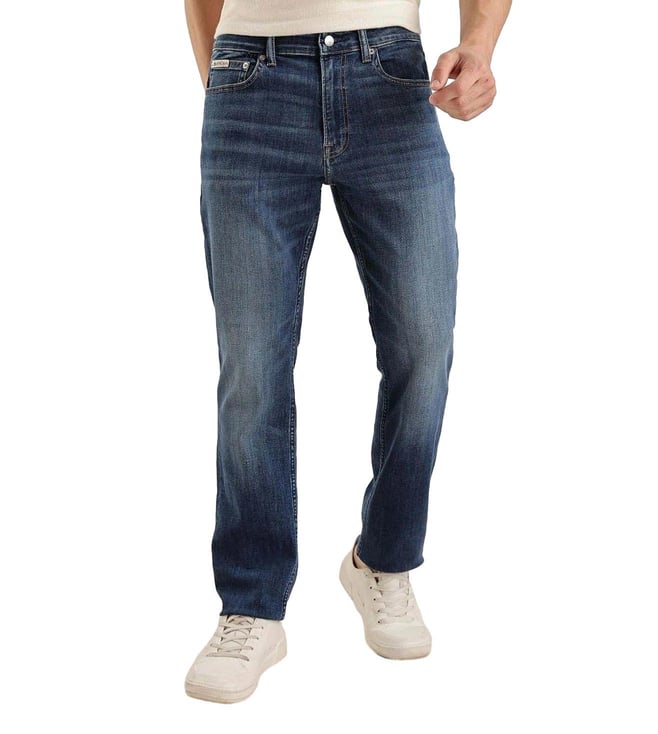 Blue Mid Wash Staright Fit Mid Rise Jeans