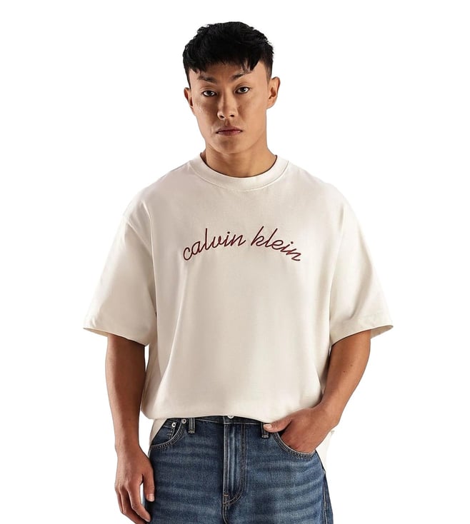 Off-White Embroidered Logo Relaxed Fit Cotton T-Shirt