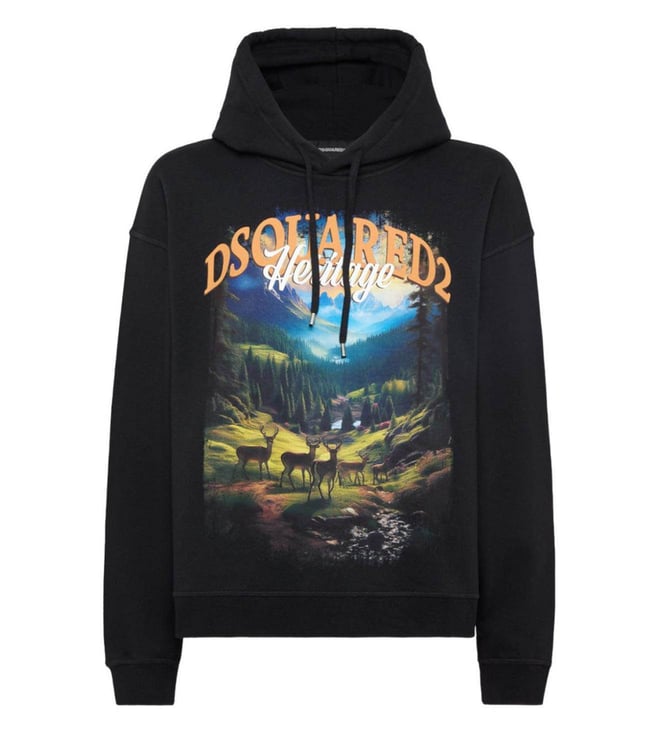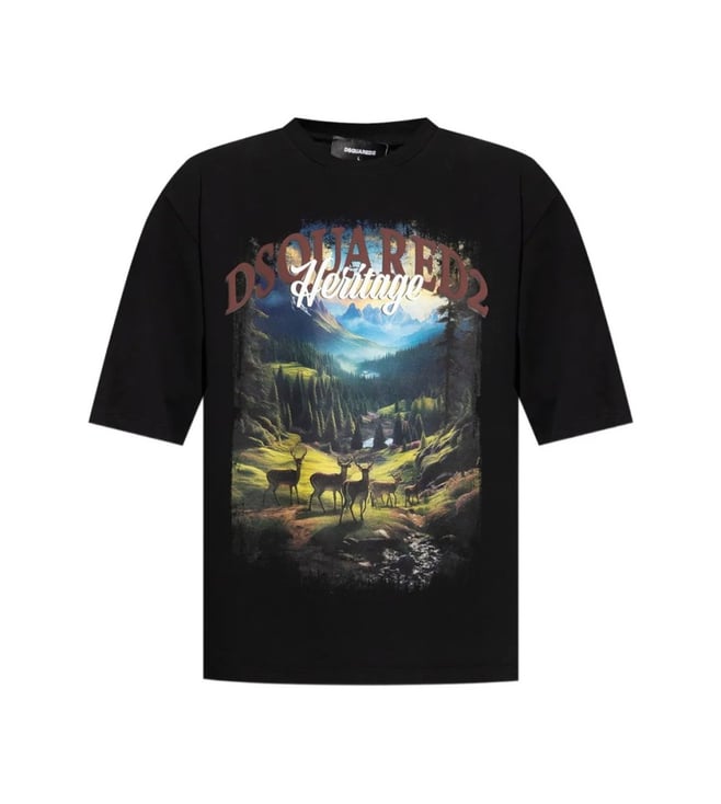 Black Crewneck Landscape Print T-Shirt