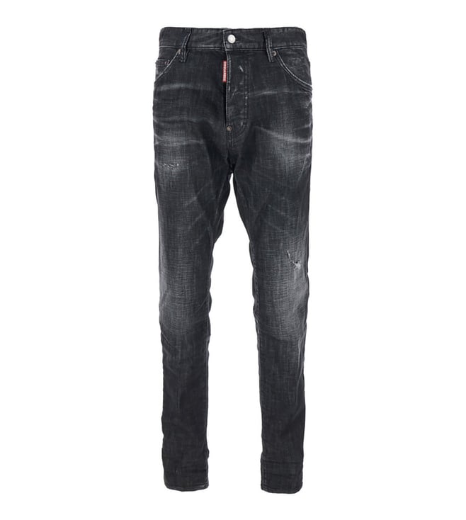Black Stretch Denim Light Distress Loose Fit Jeans