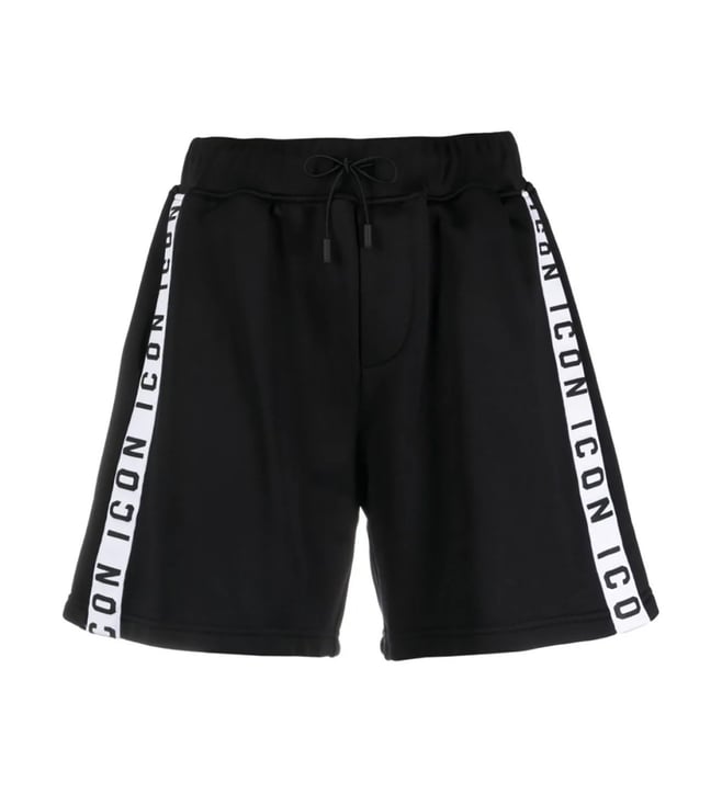 Black Logo Regular Fit Drawstring Shorts