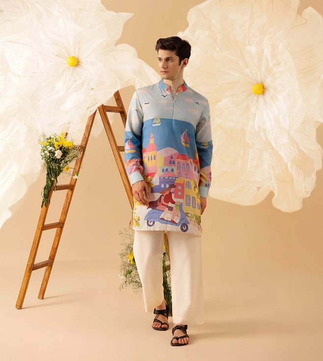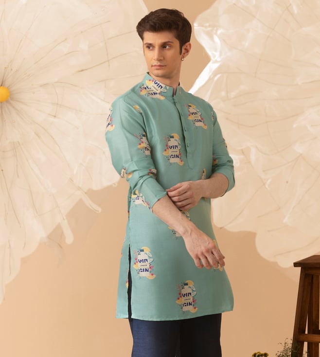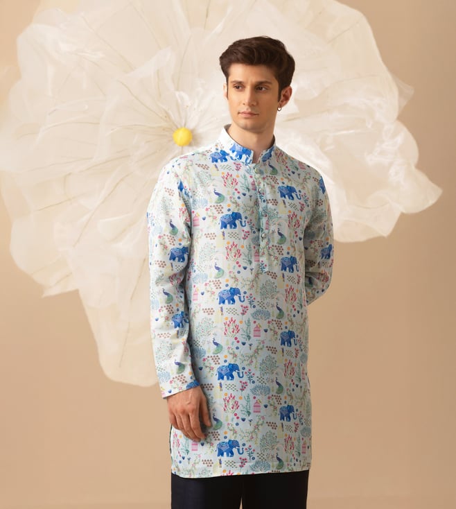 Light Blue Cotton Silk Regular Fit Kurta Set