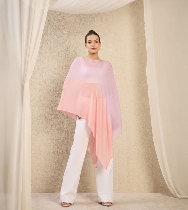Lilac And Peach Ombre Asymmetrical Tie - Dye Relaxed Fit Cape