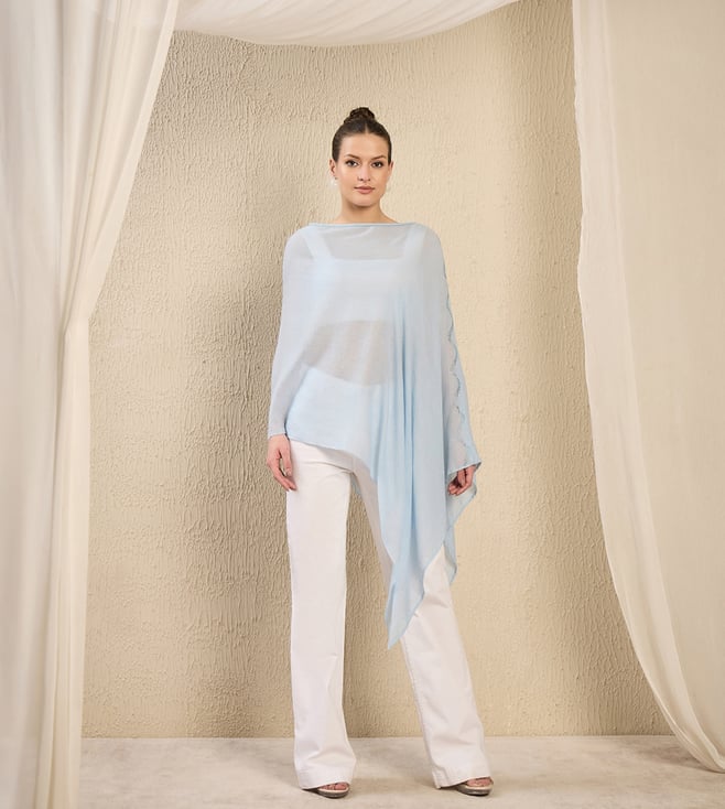 Sky Blue Ombre Asymmetrical Tie - Dye Relaxed Fit Cape