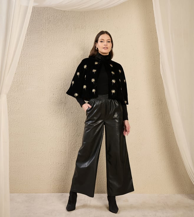 Black and Golden Motif Hand Embroidered Velvet Short Cape