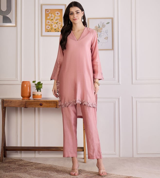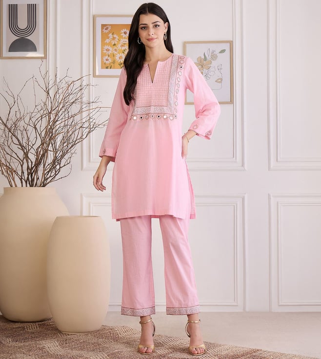 Pink Yoke Embroidered Co ord Set