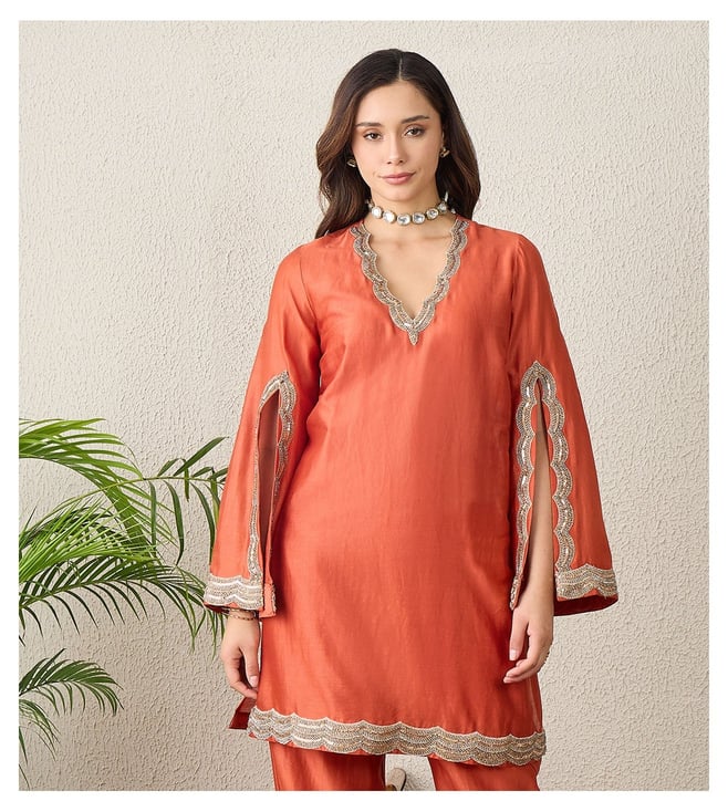 Orange Scallop Cut Kurta