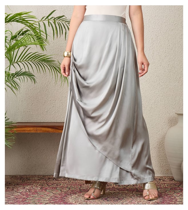Grey Pleated Long Skirt
