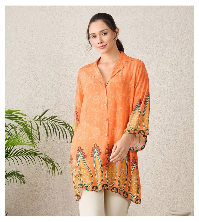 Tangerine Paisley Printed Crystal Embellished Shirt