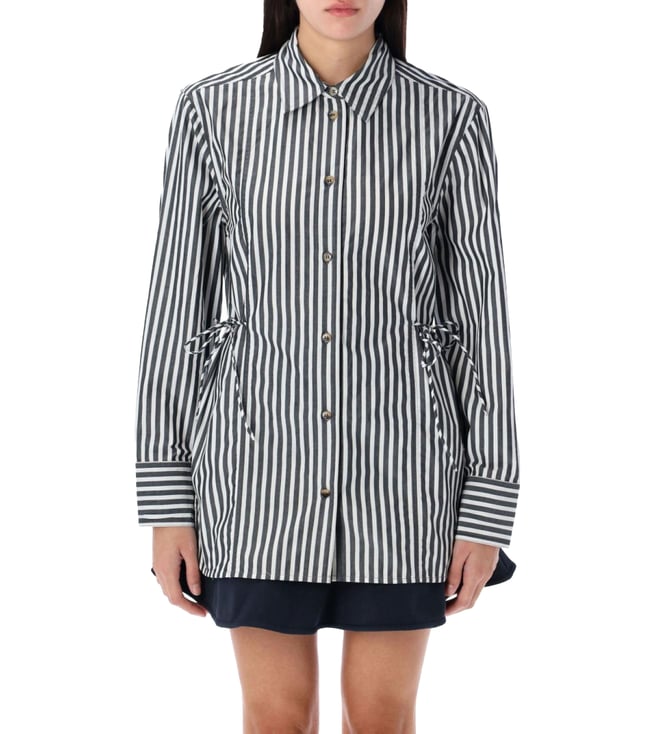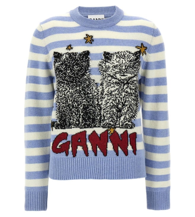 Sky Blue Embroidered Striped Wool Sweater