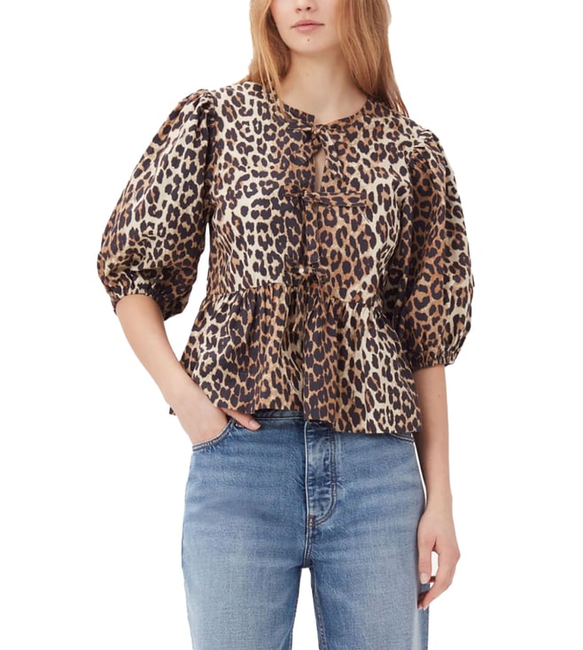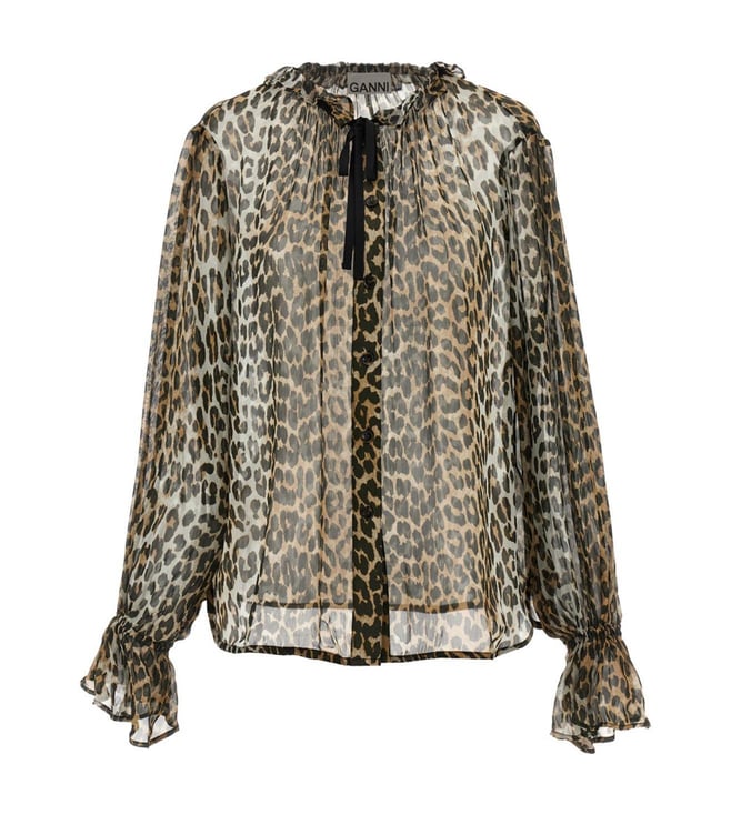 Multicolour Leopard Print Chiffon Tie String Printed Shirt