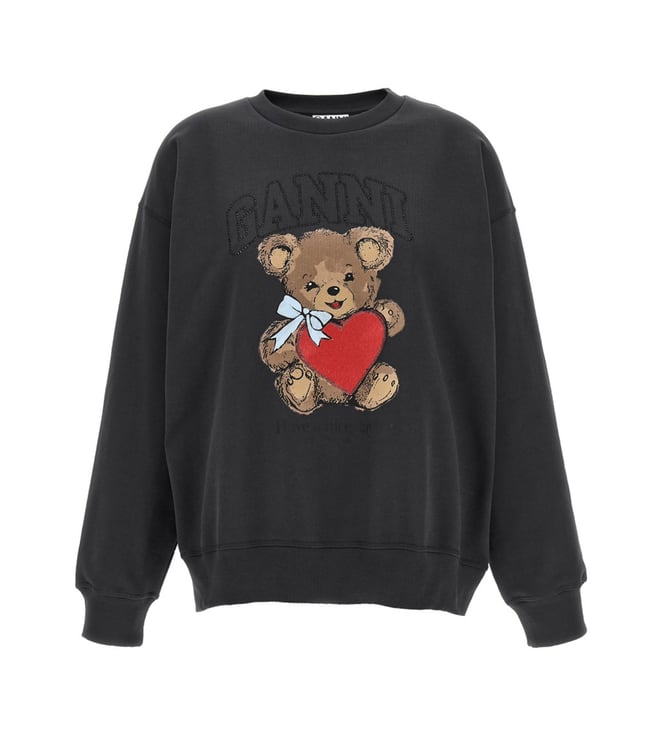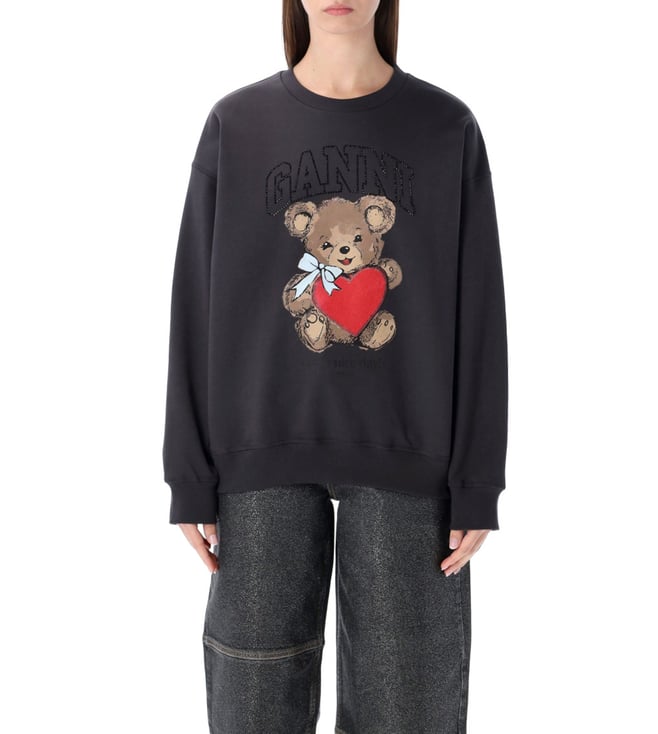 Black Crewneck Rhinestone Print Sweatshirt